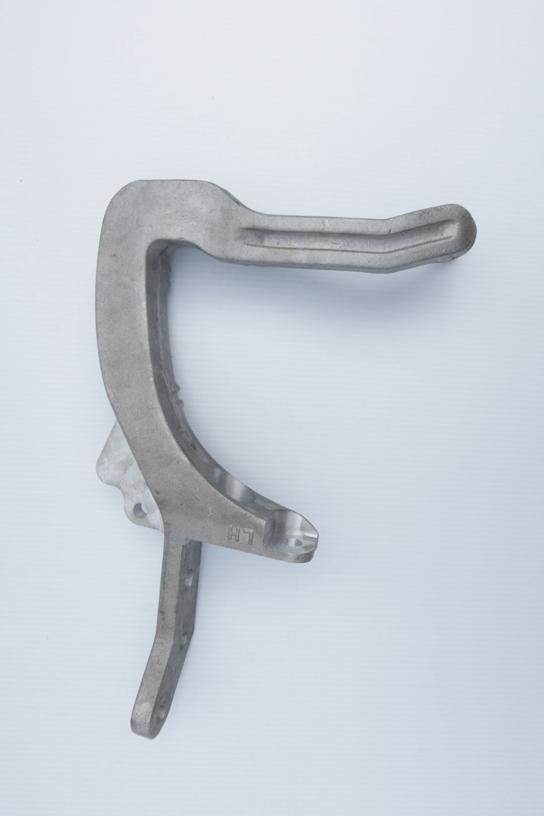 Aluminium high-quality aftermarket hinge bracket for a Volvo truck. It is specifically for the left-hand (LH) side of the vehicle. This type of hinge is commonly used to support the hood, allowing it to be opened and closed. The design features multiple mounting points for secure attachment to the vehicle's frame and the hood.
