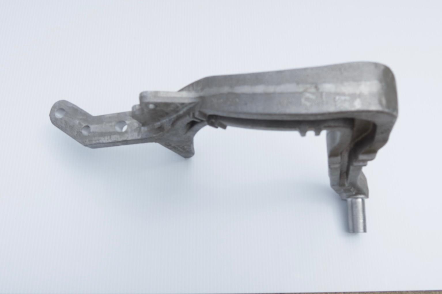 Aluminium high-quality aftermarket hinge bracket for a Volvo truck. It is specifically for the right-hand (RH) side of the vehicle. This type of hinge is commonly used to support the hood, allowing it to be opened and closed. The design features multiple mounting points for secure attachment to the vehicle's frame and the hood.